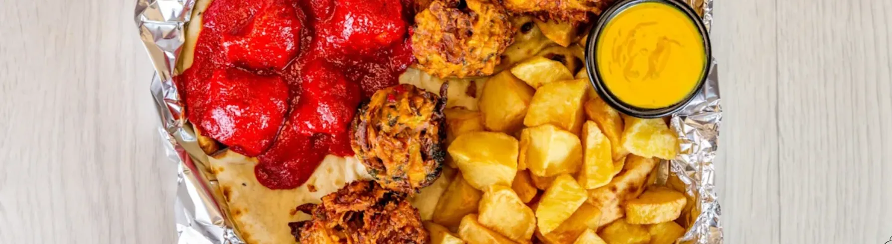 Crispy fries smothered in your choice of curry sauce then covered in cheese and grilled in our oven. Nice tasty nibbles to add to your meal!